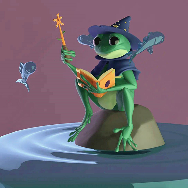 J’ai choisi les mots grenouille, poisson, chapeau, magie, fantôme. Voulant améliorer ma prise en main de Blender, j’ai décidé de sculpter, texturer et rigger un personnage, pour l’intégrer à une scène. Je me suis imposée une limite de temps d'une semaine.